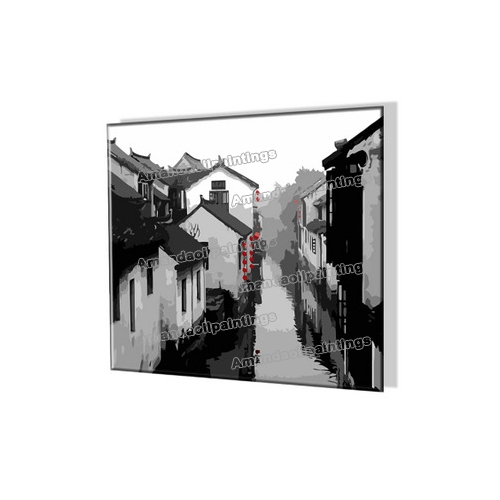 River Subject Houses Background Pure Hand-painted Landscape Oil Paintings |