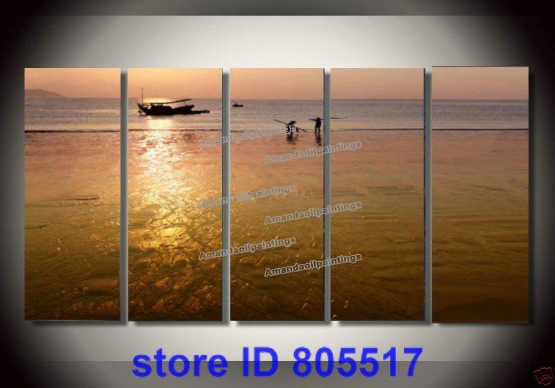 Sea Background Boat & Character Subject Canvas Abstract Oil Paintings |