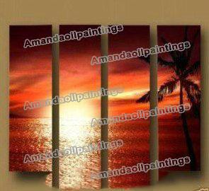 Sea & Sun Background With A Tree Canvas Modern Oil Paintings |