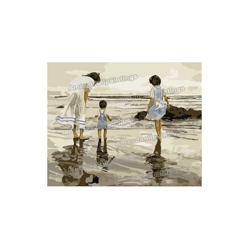 Seaside Background Three Person Subject Canvas Still life Oil Paintings |
