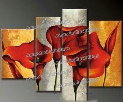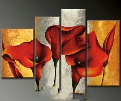 Silver & Orange Background With Red Flower Canvas Modern Oil Paintings |