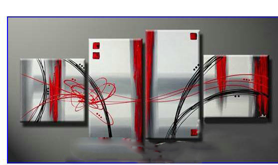 Silver & Red Background Unframed With Strips Modern Oil Paintings |