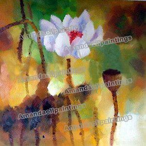 Square Shape Lotus Subject Canvas Traditional Oil Paintings |