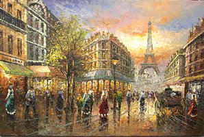 Street Subject Golden Background Canvas Scenery Oil Paintings |