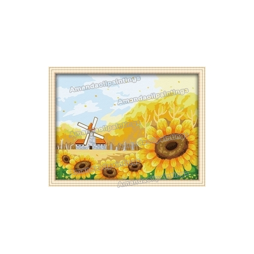 Sunflower & House Subject Wall Decoration White Sky Background Still life Oil Paintings |