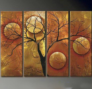 Tan Background With A Tree & Some Balls Rectangle Shape Modern Oil Paintings |