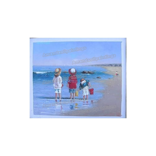 Three Chindren Subject Beach Background Pure Hand-painted Seascape Oil Paintings |