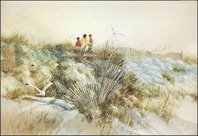 Three People Light Gold Background Never Fade Seascape Oil Paintings |