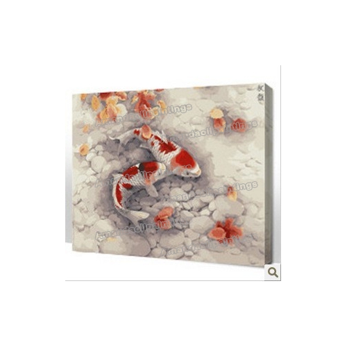 Two Gold Fishes Subject Clear Water Background Wall Decoration Animal Oil Paintings |