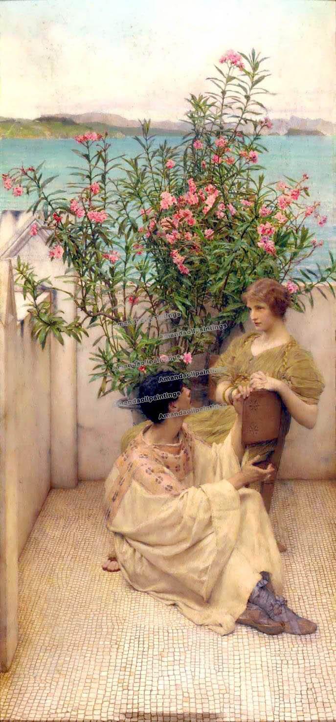 Two Person With Flower Lake & Mountains Background Vivid Colour Classical Oil Paintings |