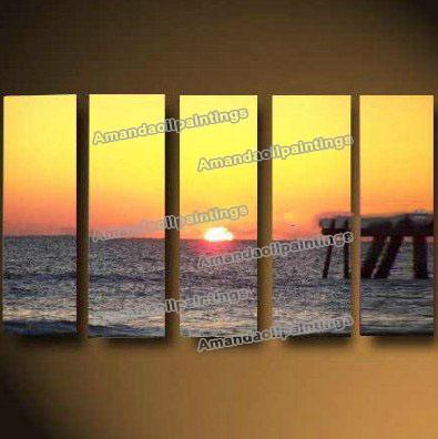 Unstretched Five Pieces Sunrise Subject Modern Oil Paintings |