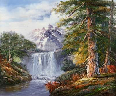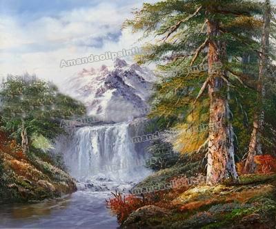 Waterfall Subject Tree Background Canvas Landscape Oil Paintings |